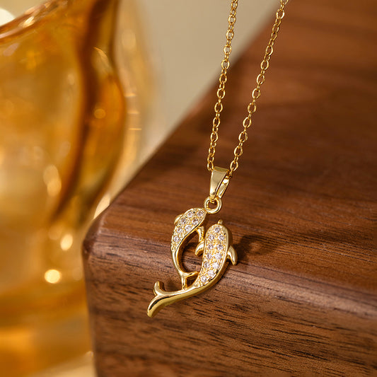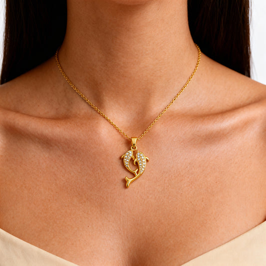 2 Collar Delfines del Amor – Acero Inoxidable & Baño de Oro 18K