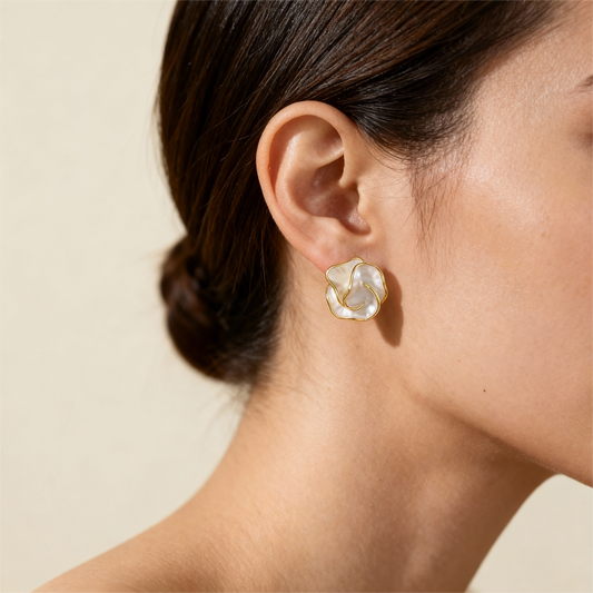 (3X2) Pendientes "RoseLuce" - Nácar y Oro 18k
