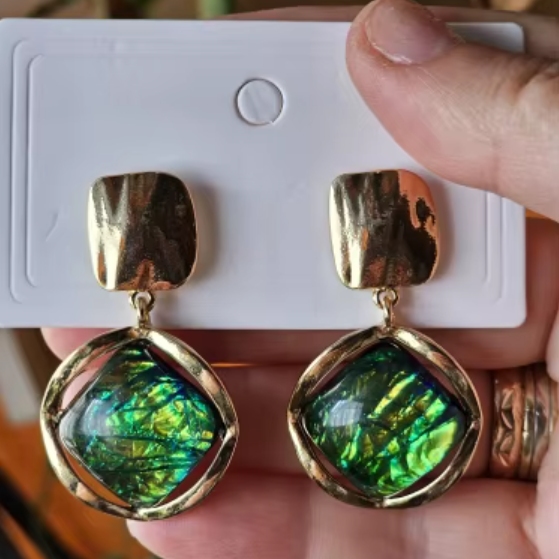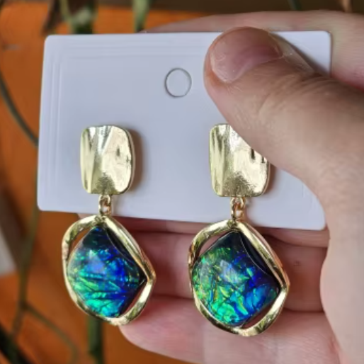 Su forma geométrica sofisticada y su brillo cambiante los convierten en el accesorio perfecto para elevar cualquier look. Desde un evento especial hasta un conjunto casual, siempre añadirán un aura de distinción.
